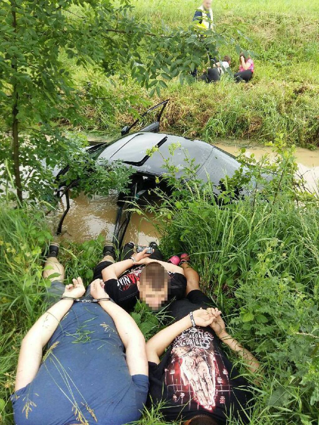Po kilku minutach niebezpiecznej jazdy kierowca wjechał na trasę biegnącą z Kęt do Oświęcimia, a następnie postanowił skręcić w boczną uliczkę, wtedy stracił panowanie nad pojazdem w wyniku czego auto wpadło do rowu i szybko wypełniło się wodą. Policjanci, zachowując względy bezpieczeństwa, błyskawicznie przystąpili do akcji ratunkowej i pomogli wydostać się z samochodu kierowcy, jego 14 – letniej pasażerce oraz trójce jego znajomych w wieku od 15 do18 lat. Żadna z podróżujących samochodem osób nie doznała obrażeń ciała. Na miejsce zostali wezwani strażacy, którzy wydostali auto z wody. Kierujący pojazdem 21 – letni mieszkaniec powiatu chrzanowskiego został zatrzymany i trafił do oświęcimskiej komendy Policji. Przeprowadzone badanie stanu trzeźwości nie wykazało alkoholu. Jak się okazało powodem dla którego nie zatrzymał się do kontroli drogowej był brak dowodu rejestracyjnego od pojazdu.