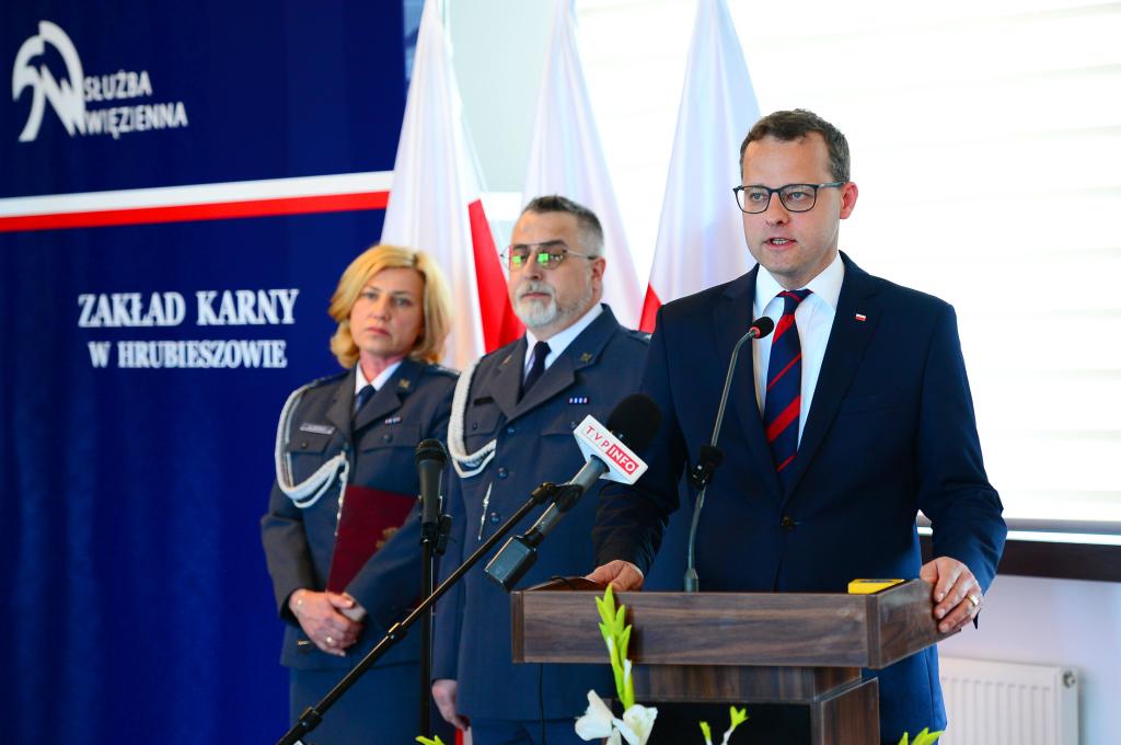 W uroczystości uczestniczył również wiceminister Marcin Romanowski, który dziękował funkcjonariuszom i pracownikom Służby Więziennej za ofiarność i zaangażowanie w pomoc uchodźcom z Ukrainy.