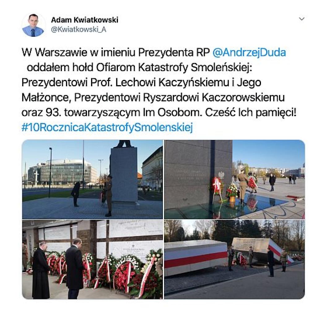 W imieniu Prezydenta hołd ofiarom katastrofy smoleńskiej oddał także minister Adam Kwiatkowski.