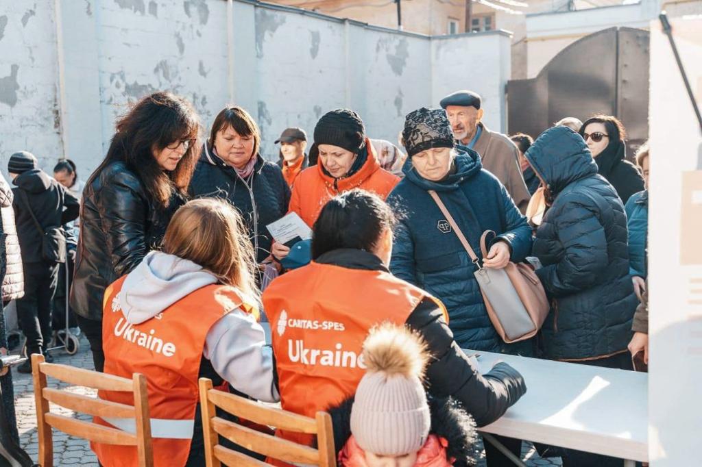 Od pierwszego dnia wojny Caritas Polska udziela pomocy Ukraińcom – tym, którzy pozostali w kraju, i tym, którzy udali się do Polski. Dotąd Caritas dostarczyła na Ukrainę pomoc rzeczową o wartości 200 mln złotych i nieprzerwanie wysyła przez granicę żywność, leki, artykuły pierwszej potrzeby. W ramach akcji Paczka dla Ukrainy Caritas przekazała 50 tysięcy paczek z żywnością i środkami higienicznymi o wartości ponad 15 mln złotych. We współpracy z Caritas-SPES uruchomiony został na Ukrainie program Rodzina Rodzinie, w ramach którego comiesięczne wsparcie finansowe od października 2022 roku otrzymuje 620 rodzin z diecezji kijowsko-żytomierskiej.