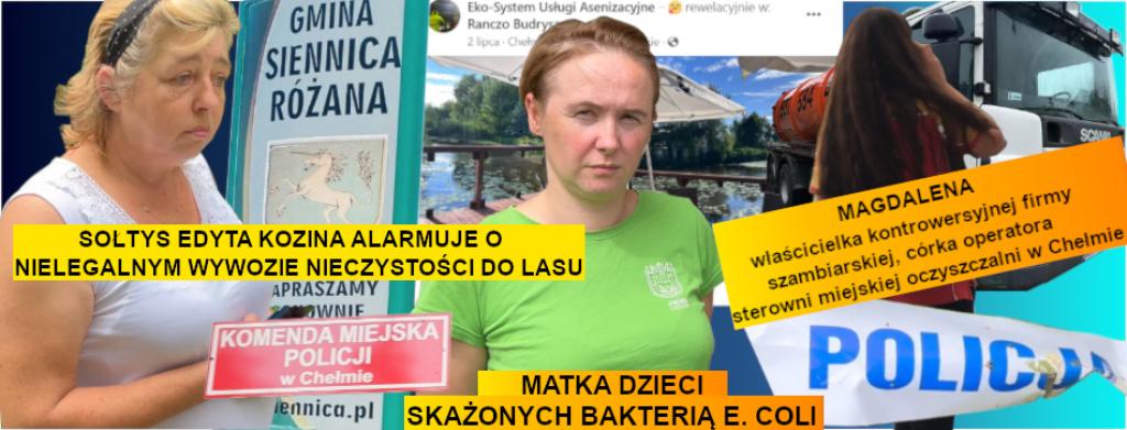 Córka i syn operatora samorządowej zlewni w Chełmie zostali zgłoszeni do prokuratury o ściganie za nielegalny wylew szamba w lesie. Po naszej wczorajszej rozmowie z prezesem oczyszczalni i córką operatora sterowni, jego syn zadzwonił grożąc konkurencyjnemu przedsiębiorcy, że „go zniszczy!”