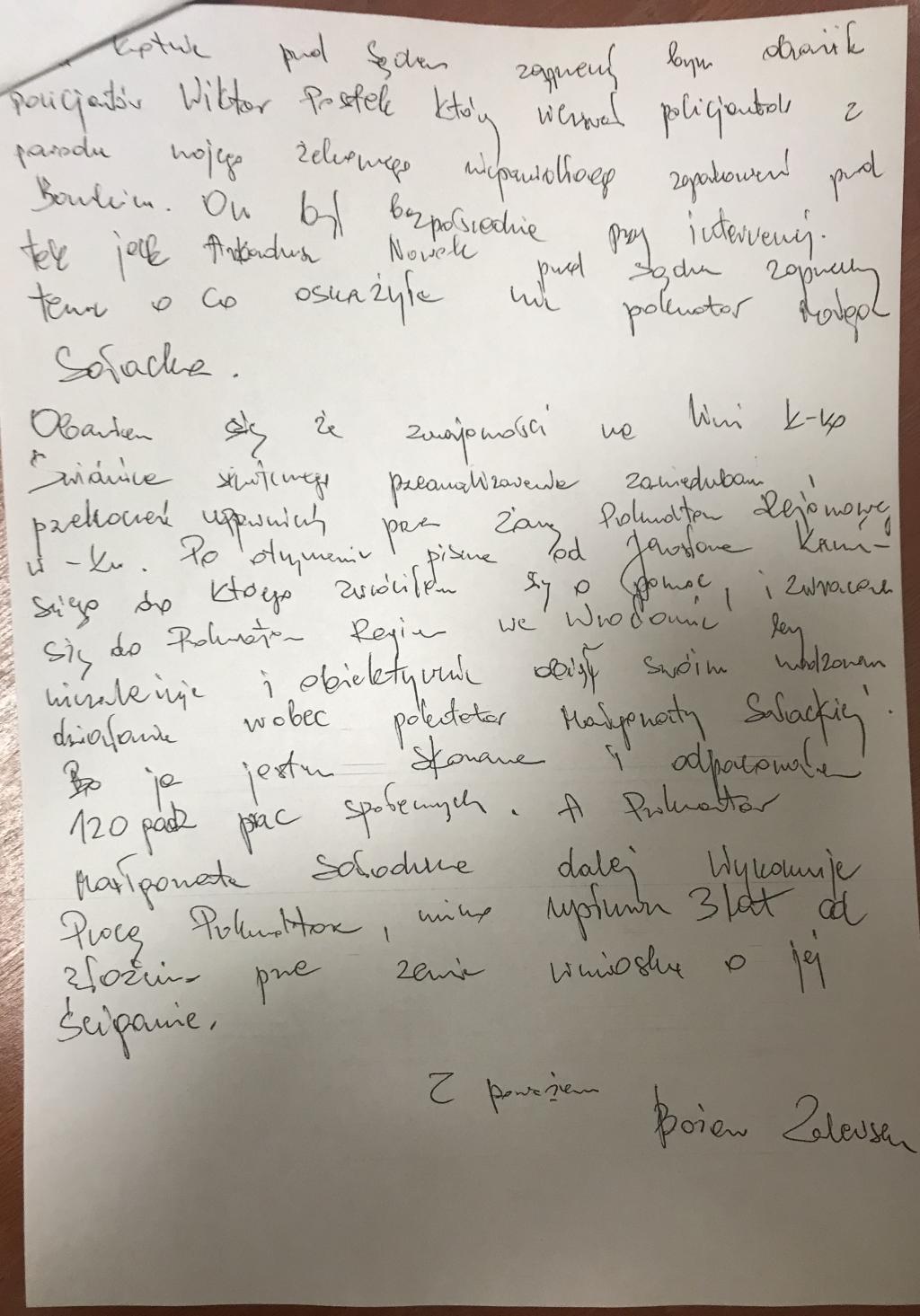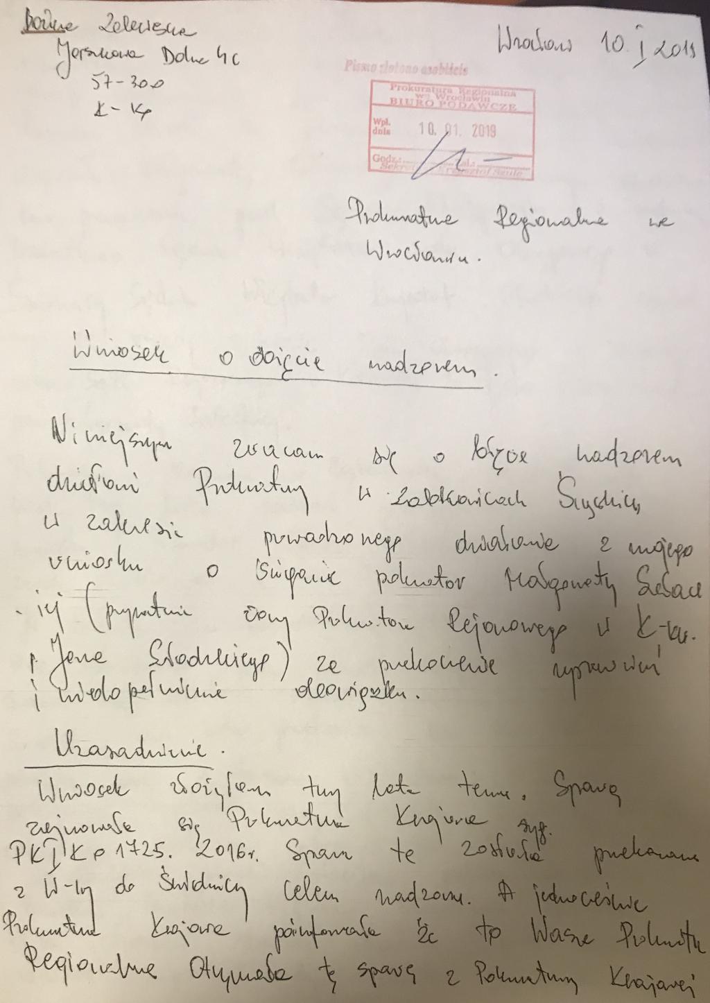 Zjawiła się osobiście w siedzibie tej prokuratury i po rekomendacji prokuratora dyżurnego złożyła pełny obszerny wniosek w tej sprawie, który publikujemy wraz z niniejszym tekstem.
