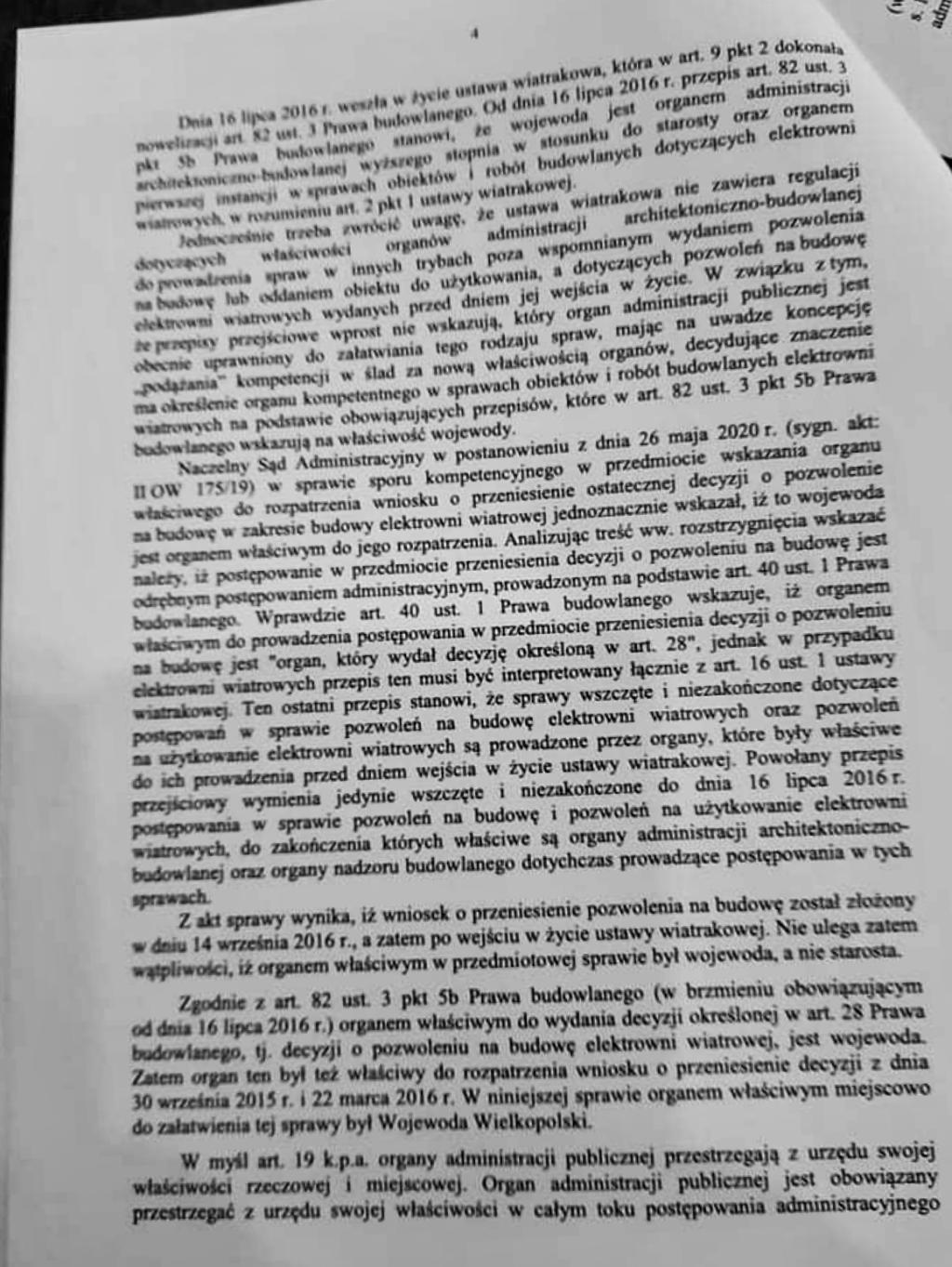 Prezentujemy 6-stronicową decyzję wojewody wielkopolskiego, który 10 września 2021 unieważnił pozwolenie na budowę 3 wiatraków w gminie Nowe Skalmierzyce, wydaną przez starostę Ostrowa Wielkopolskiego. Dziś adwokat "Stowarzyszenia Stop Wiatrakom" składa wnioski o ściganie kierownika tej budowy, Łukasza Grzesiuka, który ma za nic ustanowione przez wojewodę prawo!