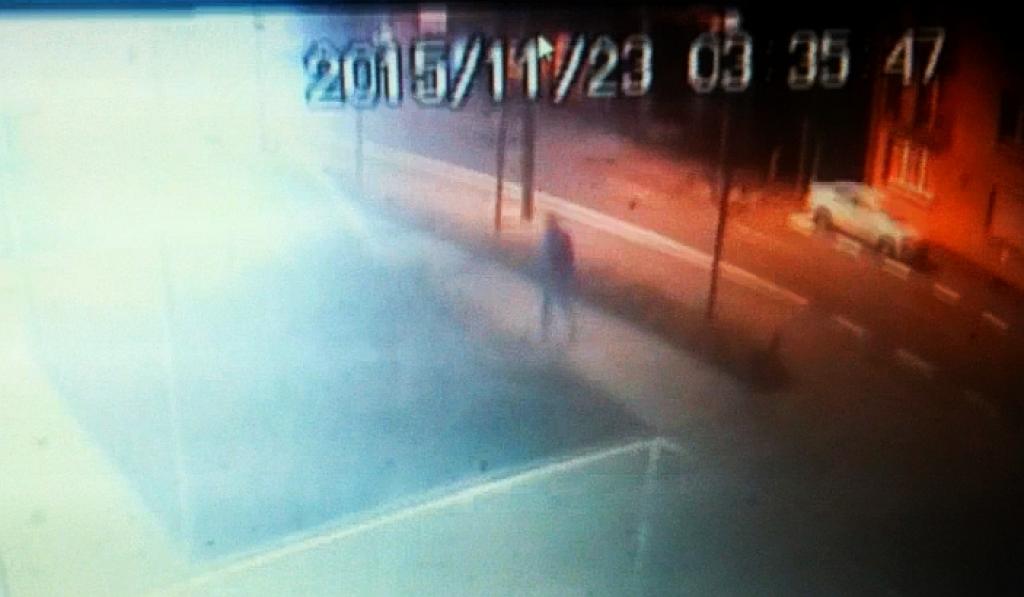Zatrzymuje się w świetle drzwi frontowych i wykonuje połączenie telefoniczne. Rozmawia ponad minutę. Następnie rusza w stronę AWF-u i idąc wyłącza telefon.