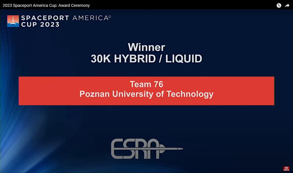 Znakomicie spisali się polscy studenci w międzynarodowym konkursie Spaceport America Cup, który odbywał się w Stanie Nowy Meksyk w Stanach Zjednoczonych. Zwycięzcami najbardziej zaawansowanej technicznie kategorii 30k SRAD Hybrid/Liquid został zespół RocketLab z Politechnik Poznańskiej. Z kolei drugie miejsce w kategorii 10k SRAD Hybrid zajęła ekipa PWr in Space z Politechniki Wrocławskiej.