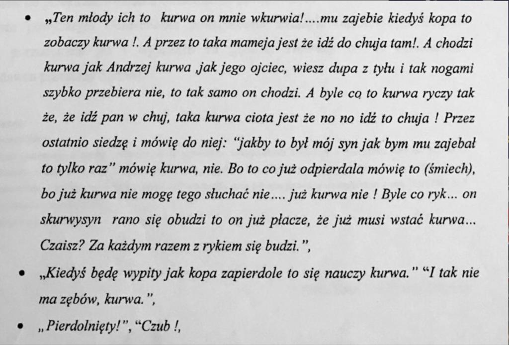 Ale podległy administracyjnie prezesowi Sądu w Złotowie sędzia Edmund Cybulski, po wysłuchaniu tych szokujących nagrań, nakazał wydanie dziecka matce! Czyli zabranie z bezpiecznego domu ojca 4-atka z użyciem kuratora i policji i przekazanie je do środowiska, gdzie zażywa środki chemiczne i pije alkohol agresywny Piotr P.!