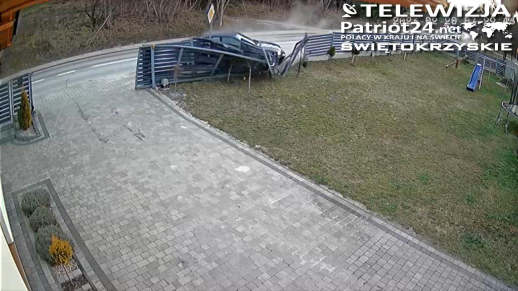 Na publikowanym nagraniu widać ciemne audi zbliżające się do posesji. Jak się okazało, 58-letni kierujący stracił panowanie nad pojazdem, najpierw wjechał na chodnik po swojej prawej stronie, auto w pewnym momencie przejechało na drugą stronę drogi i uderzyło w ogrodzenie. Swoją podróż audi zakończyło na dachu zatrzymując się na terenie prywatnej posesji. W groźnie wyglądającym zdarzeniu nikt nie odniósł poważnych obrażeń. Zauważyć należy, że na posesji gdzie zatrzymał się dachujący samochód na szczęście nie było nikogo.