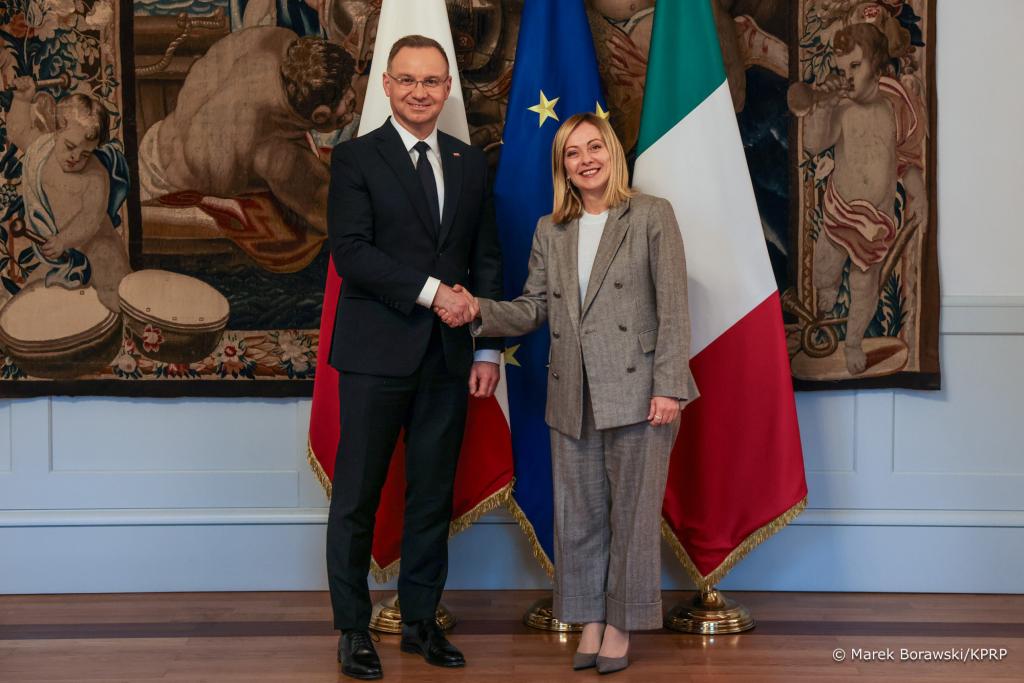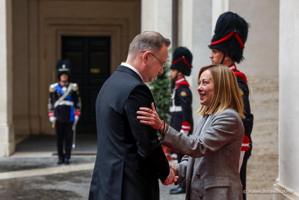 Następnie polski przywódca odbył spotkanie z Premier Giorgią Meloni.