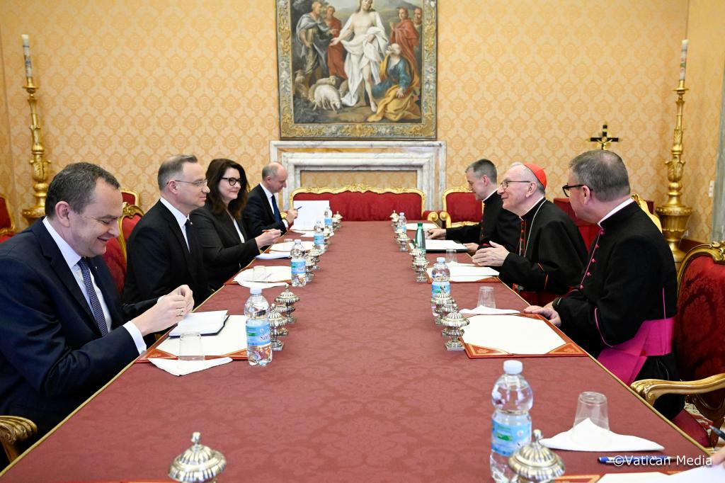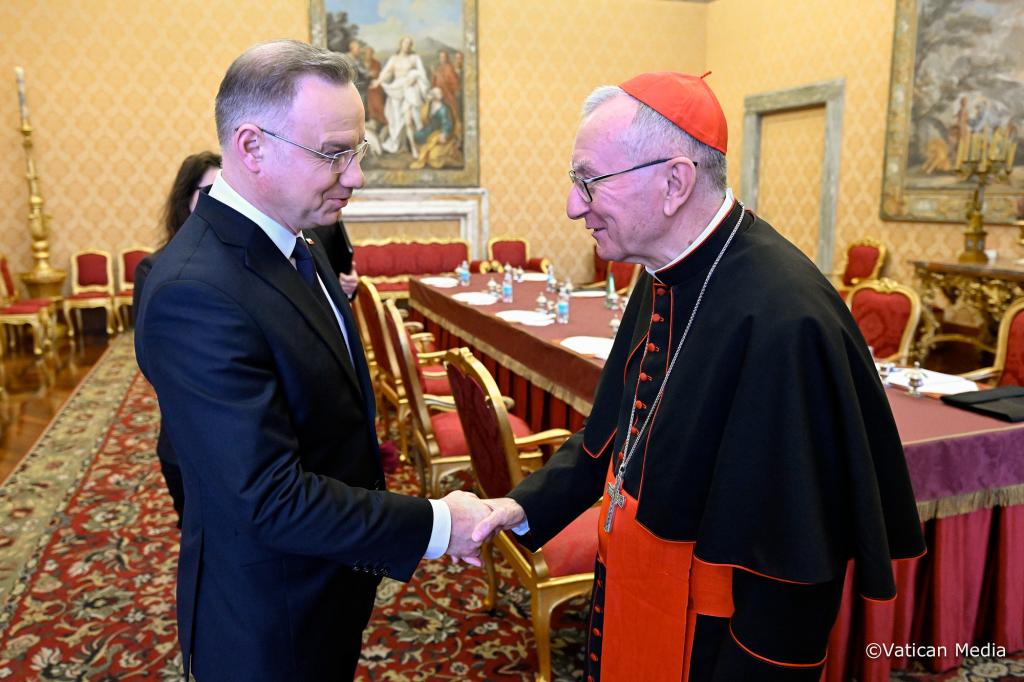 Rano w Watykanie Prezydent Andrzej Duda spotkał się z Kardynałem Pietro Parolinem. Rozmowy dotyczyły aktualnej sytuacji międzynarodowej oraz działań pomocowych, podejmowanych przez Stolicę Apostolską w związku z trwającą rosyjską agresją na Ukrainie i konfliktem na Bliskim Wschodzie.