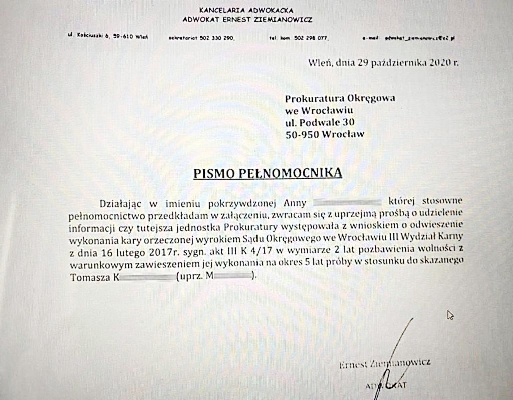 W ostatnim czasie Sąd Apelacyjny we Wrocławiu podtrzymał decyzję Sądu Okręgowego we Wrocławiu, że mimo licznych wyroków skazujących, Tomasz K. będzie przebywał na wolności.